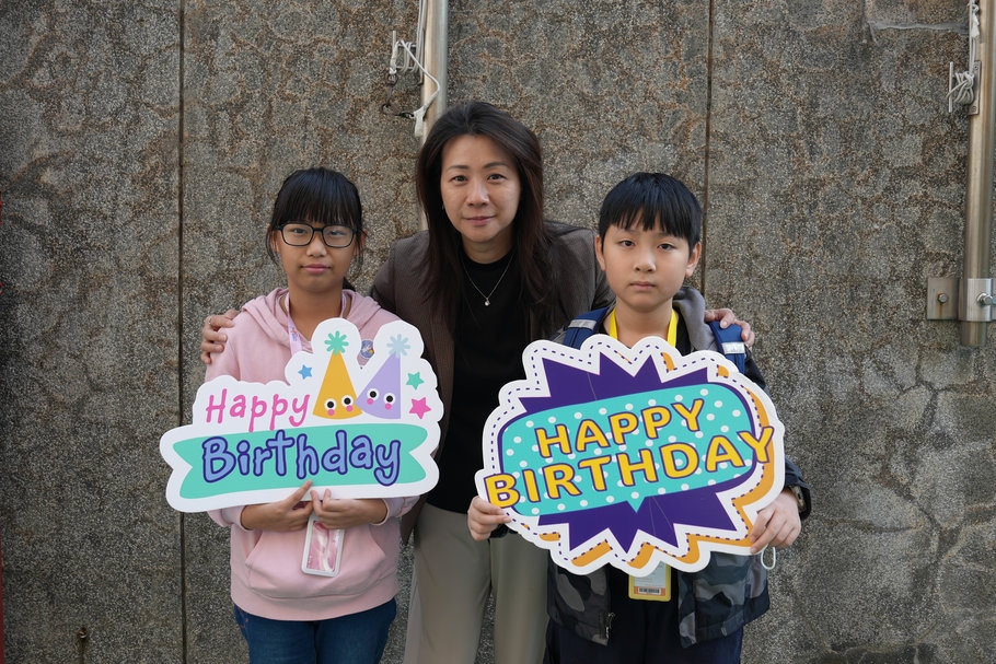 校長與十一月慶生的同學們聚在一起,共同度過美好的時光,並拍下溫馨合影。祝所有十一月之星生日快樂,身體健康,學業進步!