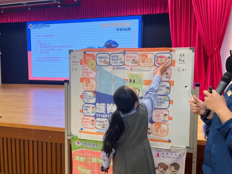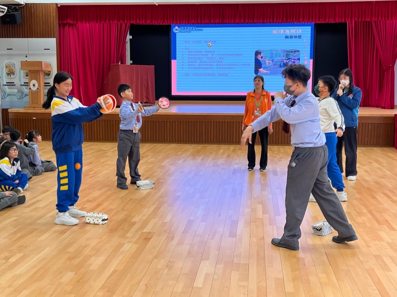 1月份學校引入了兒童護脊基金的護脊活動,以提高學生對保護脊骨的健康意識。一、二年級有「一齊學習護脊操」及「脊骨和我的身體」講座,三、四、五年級有「護脊龍訓練」遊戲,而六年級有「理想姿勢逐個捉」的講座,活動豐富,學生積極踴躍,不但認識脊骨結構,同時探究體態及姿勢如何影響脊骨。此外,部份班級以大富翁形式參與活動,配合各類護脊小遊戲,學習從日常生活中學會如何保護脊 骨。